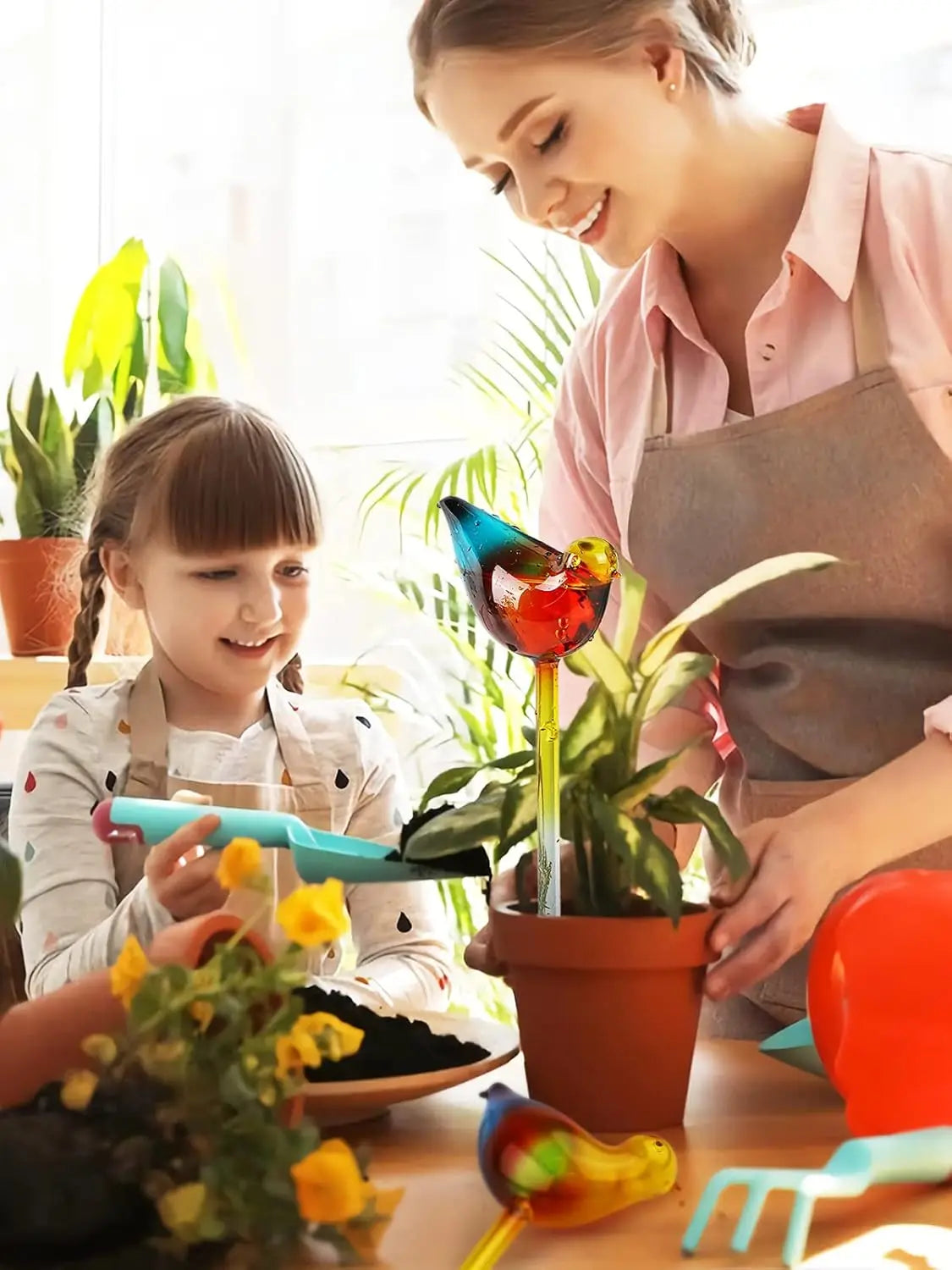 Create color-matched trios across shelves and windowsills. The globe releases water only when needed, cutting wilt and overwatering. Reusable, easy to clean with the included brush.