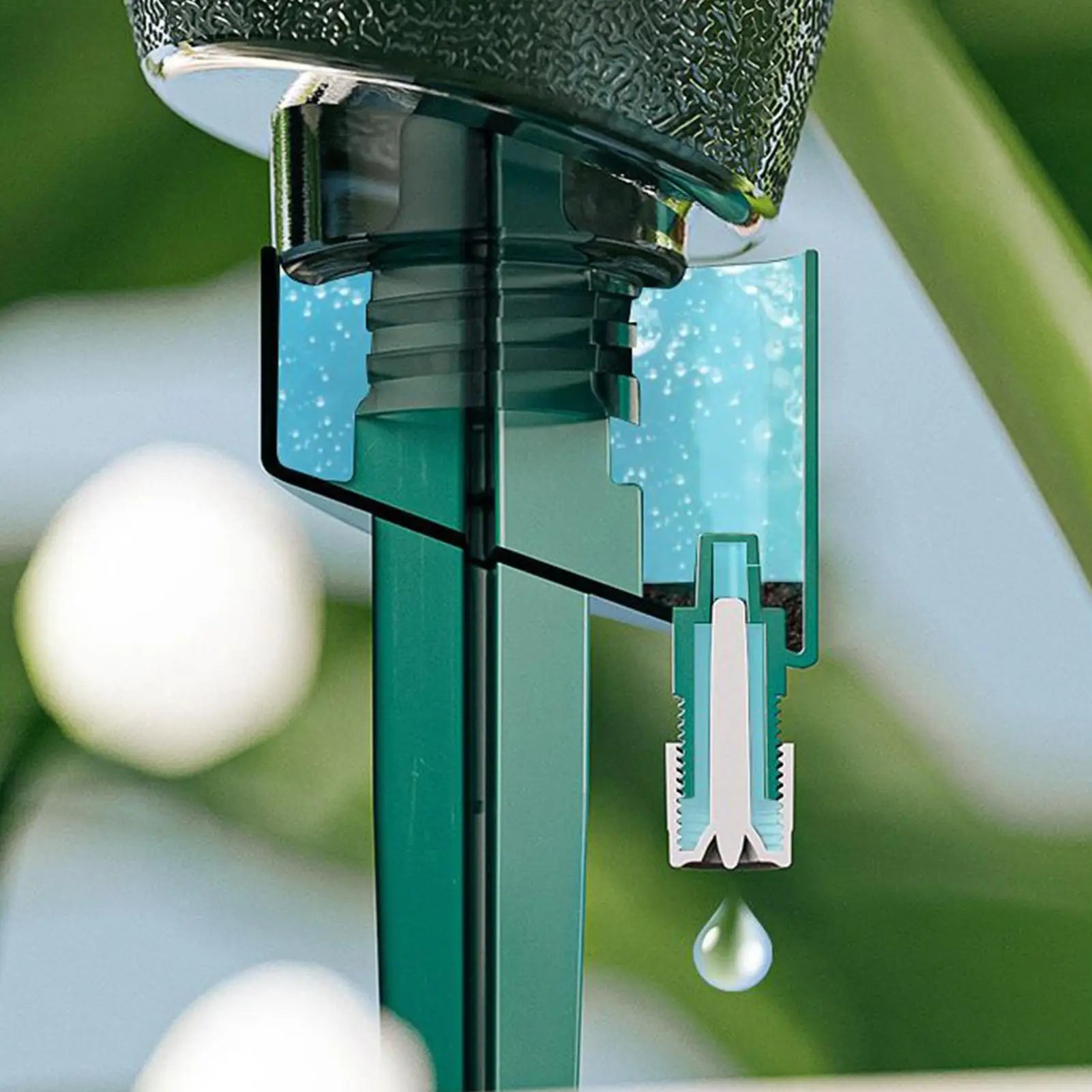Pre-water the soil, fill the globe, then insert the stem at a 45° angle so the tip sits near the root zone. This prevents air locks and overwatering.