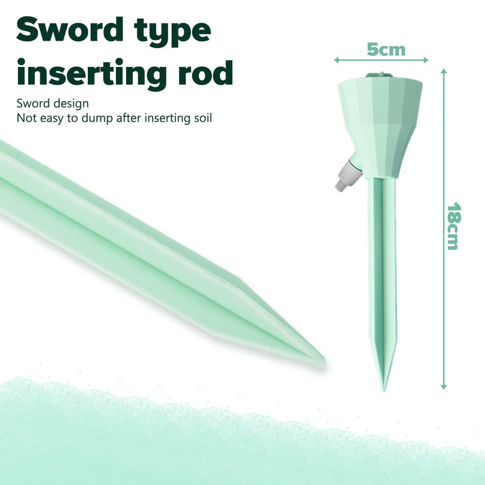 Pre-water the soil, fill the globe, then insert the stem at a 45° angle so the tip sits near the root zone. This prevents air locks and overwatering.
